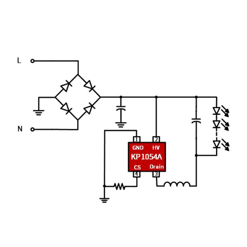 KP1054AVPA — это высокоинтегральный и высокоэффективный понижающий светодиодный выключатель питания.
