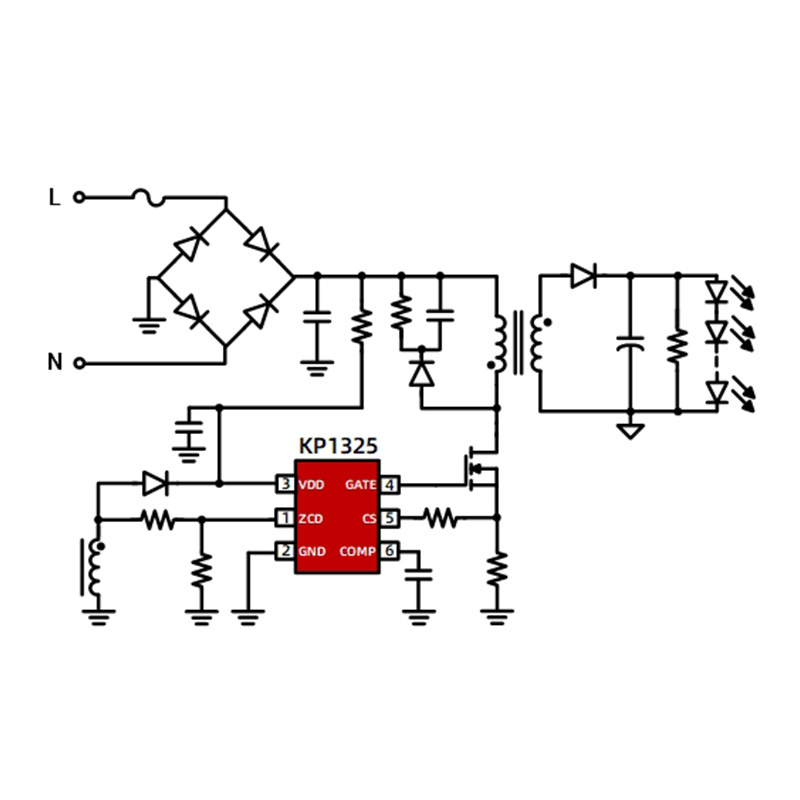 KP1325LGA представляет собой высокоинтегрированный контроллер мощности светодиодов постоянного тока, чип использует квазирезонансный режим первичной обратной связи, а технология управления активной коррекцией коэффициента мощности может удовлетворить требования к производительности, такие как высокий коэффициент мощности, низкий уровень гармонических искажений и высокая эффективность.